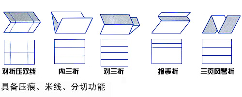 折板數(shù)量 = 2 偏斜調(diào)整裝置 = 標準配置 輸紙系統(tǒng) = 吸氣式飛達 收紙方式 = 連續(xù)重疊式收紙 最小紙張幅面 = 65×90mm 最大紙張幅面 = 380×520mm 用紙厚度 = 60-240g/m2 折輥速度 = 0-22000張/h (4A) 電源 = 220V/50Hz 功率 = 1200W 外形尺寸(長×寬×高) = 2000×750×1200mm